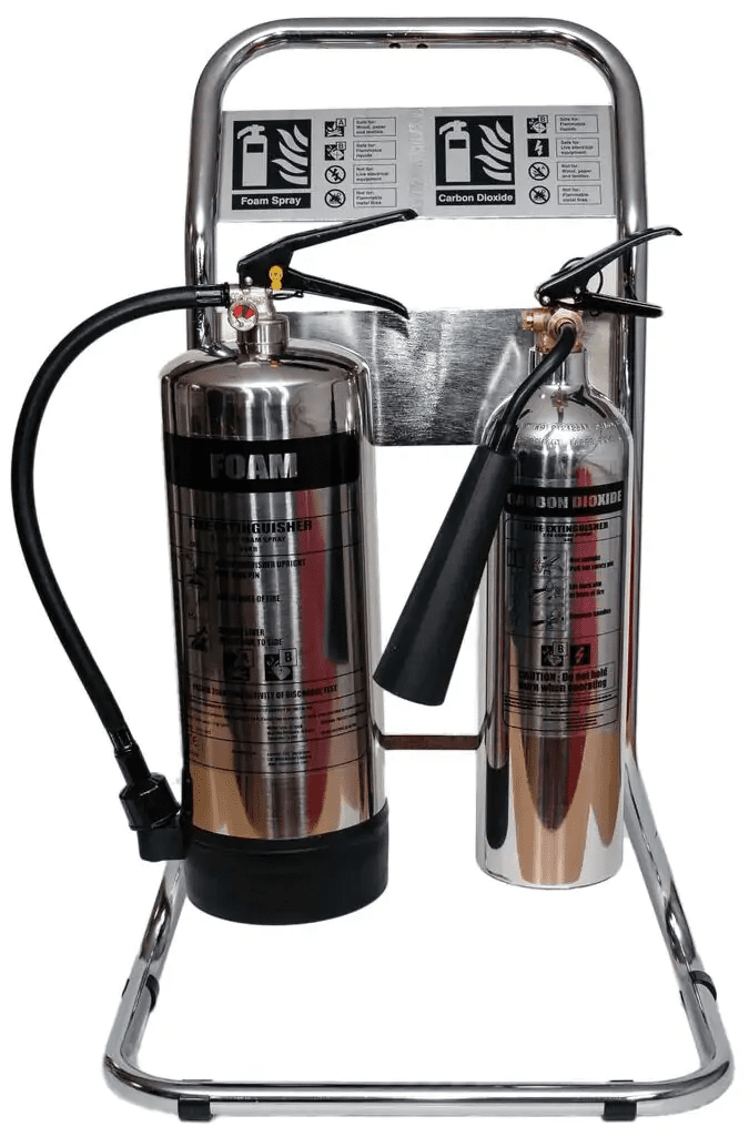 Compatibility: two 2kg CO2 extinguishers or two 6–9kg / 6–9 litre extinguishers